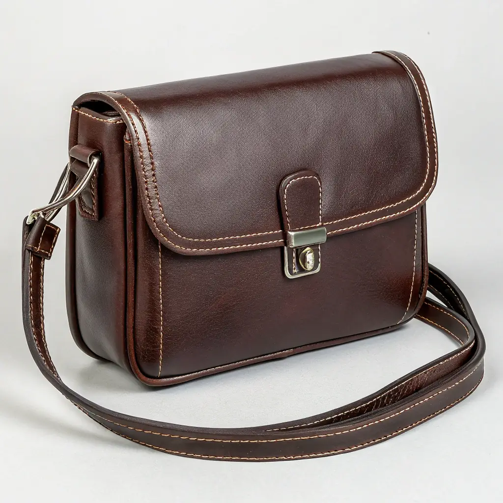 Bolso bandolera de cuero en diseño compacto y elegante, ideal para llevar lo esencial con estilo. Su acabado en cuero suave y detalles minimalistas lo convierten en un accesorio versátil para el día y la noche. La correa ajustable permite comodidad y un ajuste perfecto. Un complemento imprescindible para un look moderno y sofisticado.